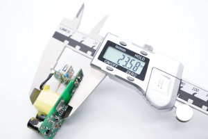 實用游標卡尺測得充電器機身高度為64.91mm。