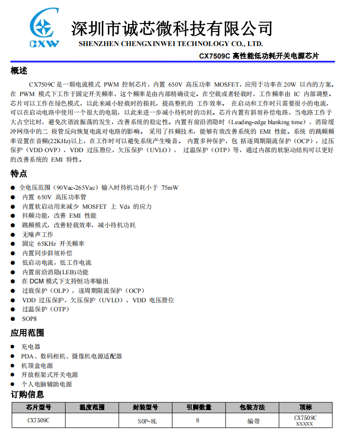 誠芯微CX7509C資料信息。