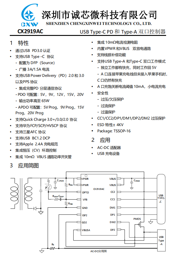 誠芯微CX2919AC資料信息。