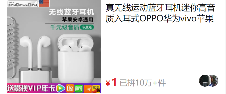 還有1元錢就能入手的真無線藍牙運動藍牙耳機,和AirPods還挺像。