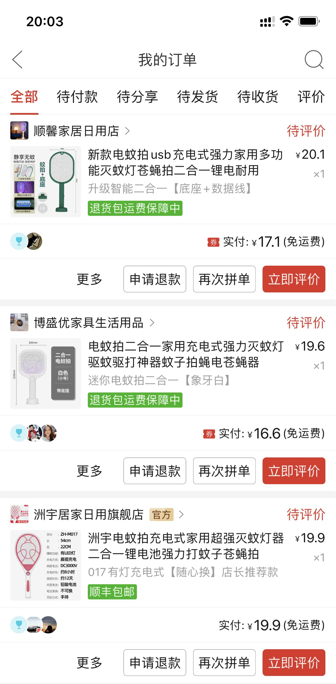 電蚊拍都是以以低于20元的價格入手,而且全部包郵。