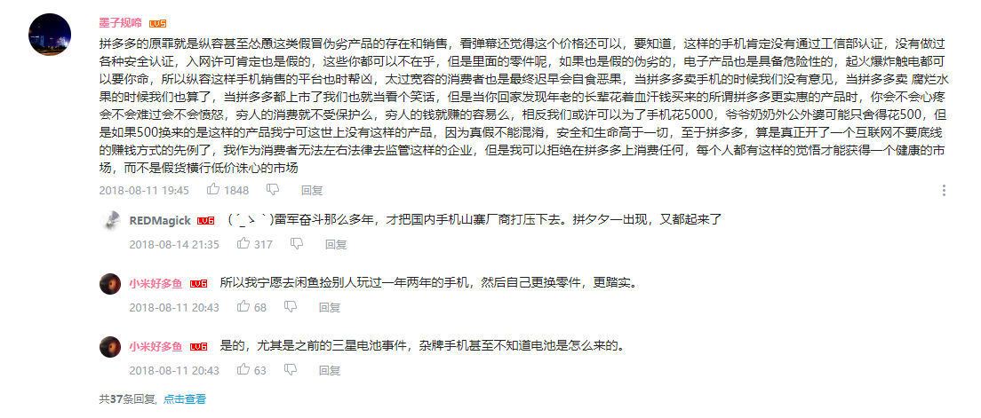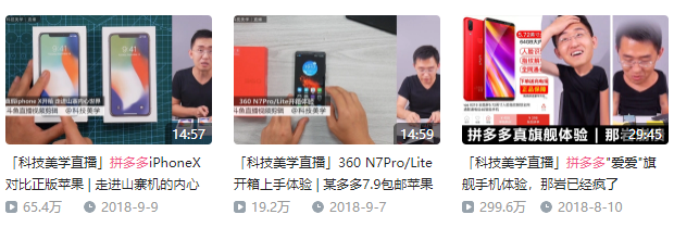 時間來到2018年,科技美學做過幾期直播,主題就是從PDD買的手機,可把大家樂壞了。