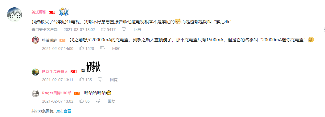 更搞笑的是評論區發言:叔叔買了臺索尼4K電視,就叫“索尼4K”(微笑.jpg)