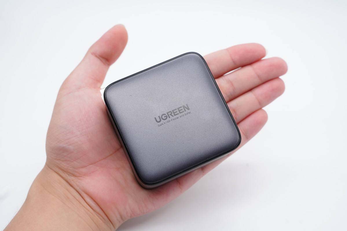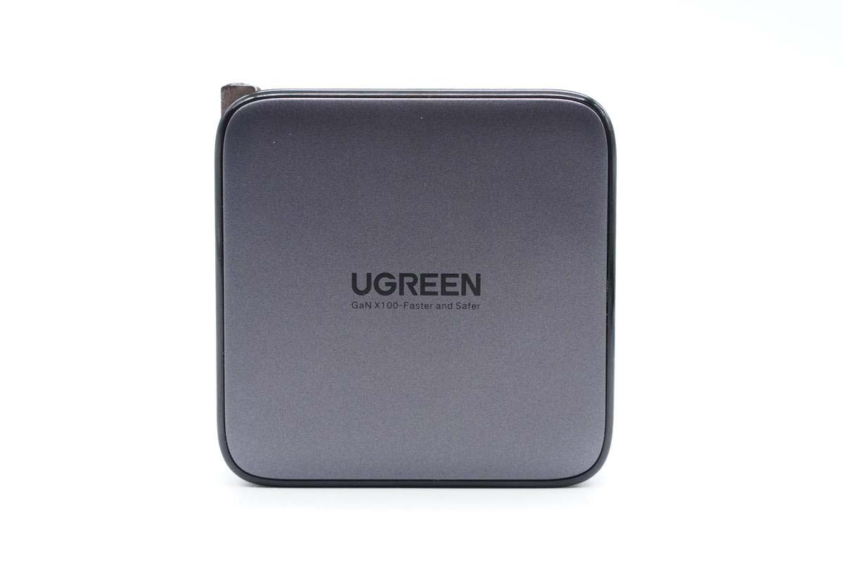 正面中心印有UGREEN品牌和GaN X 100-Faster and Safer字樣。