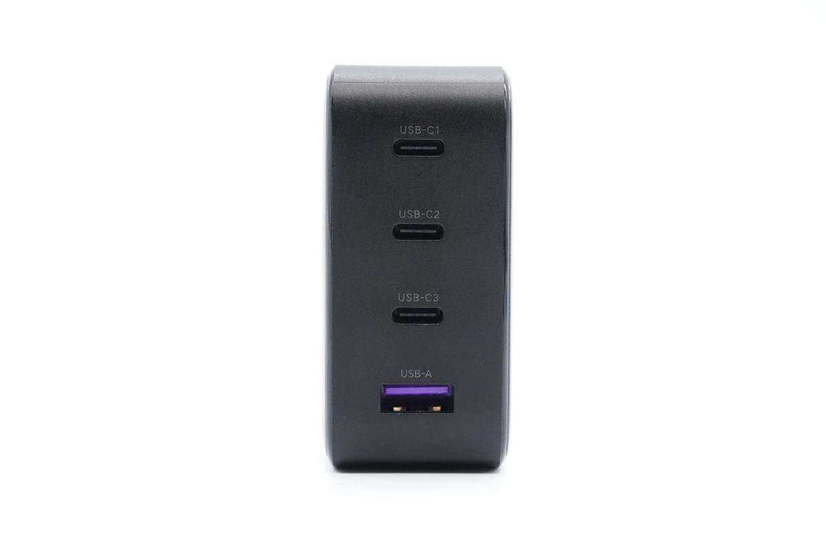 充電器的C1和C2口均支持100W快充,可給筆電等大設備使用,且支持功率盲插,日常使用會很方便。另外C3口支持22.5W PD快充,可完美適配蘋果iPhone 12,A口支持22.5W SCP快充,可滿足華為手機快充需求,產品整體實用性強。下面充電頭網就對這款充電器進行詳細拆解,看看其用料做工如何。