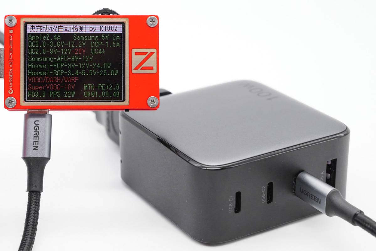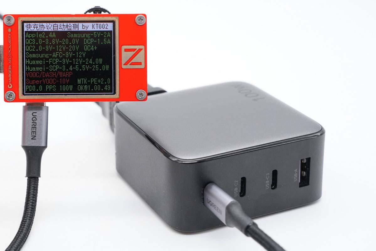 使用KT002檢測發現USB-C2口支持的協議和USB-C1口的完全一樣。