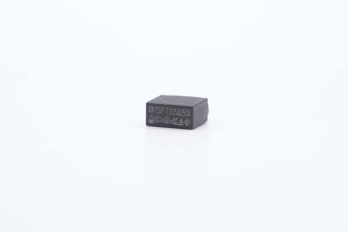 延時保險絲特寫,規格為3.15A 250V。