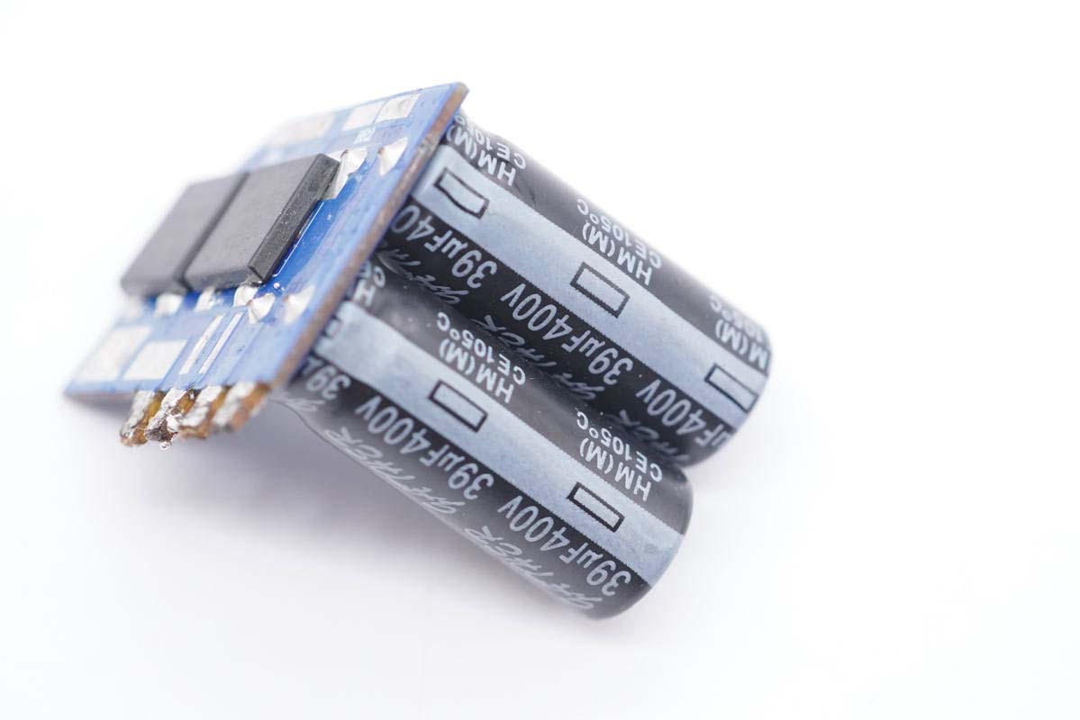5顆高壓濾波電解電容均來自凱澤鑫電子,小板上的兩顆規格為400V 39μF。