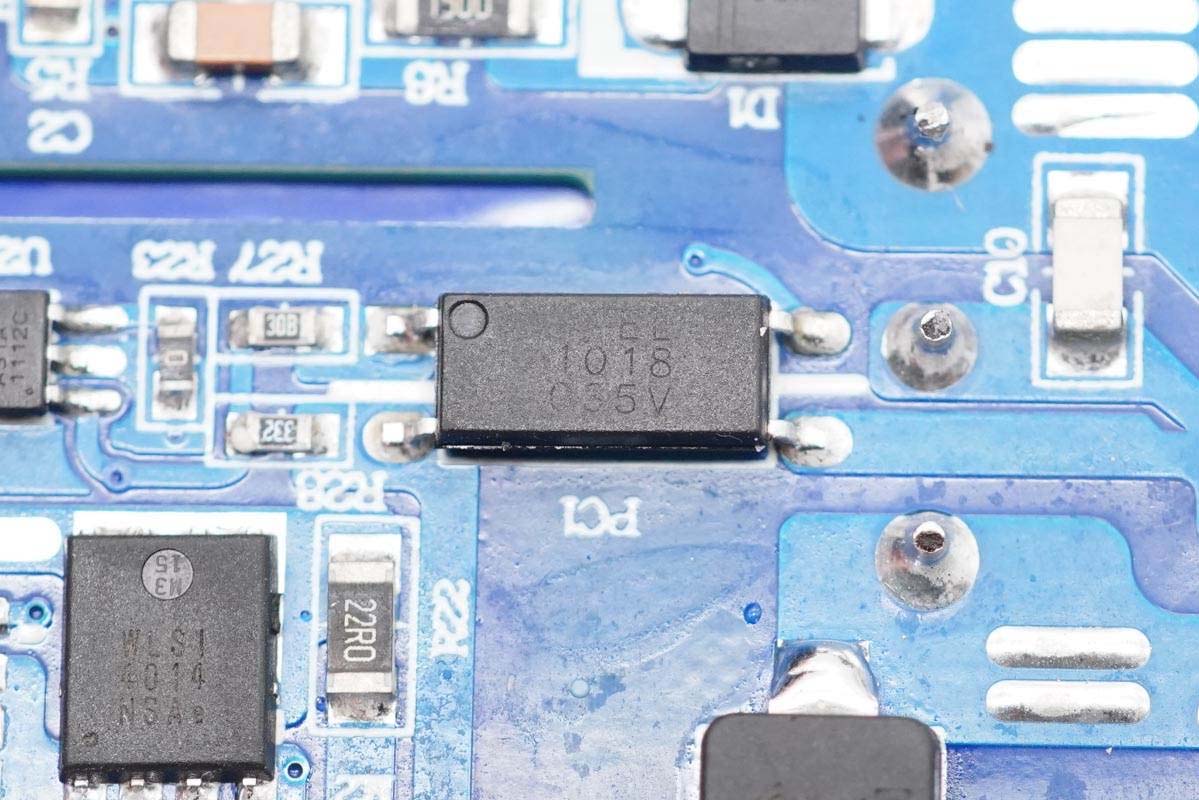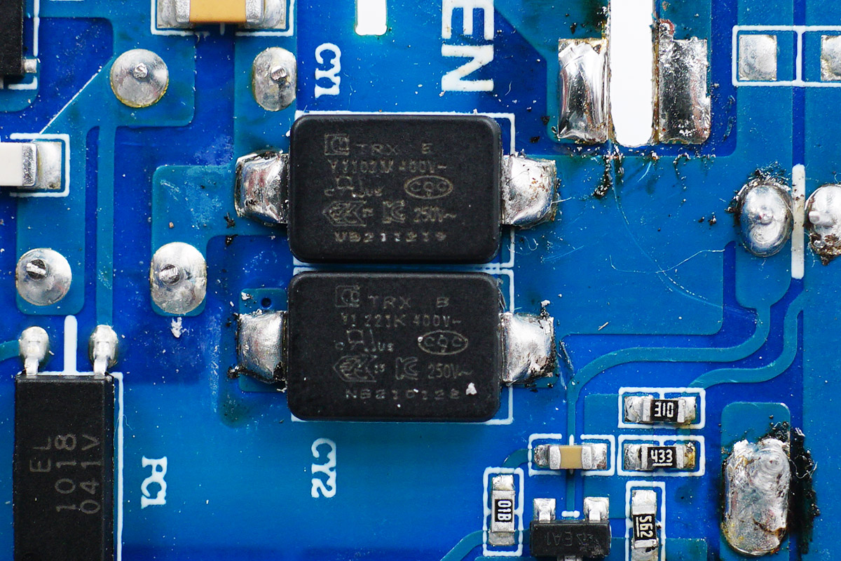 兩顆貼片Y電容來自四川特銳祥科技股份有限公司,具有體積小、重量輕等特色,非常適合應用于氮化鎵快充這類高密度電源產品中。