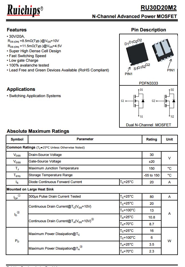 銳駿RU30D20M2資料信息。