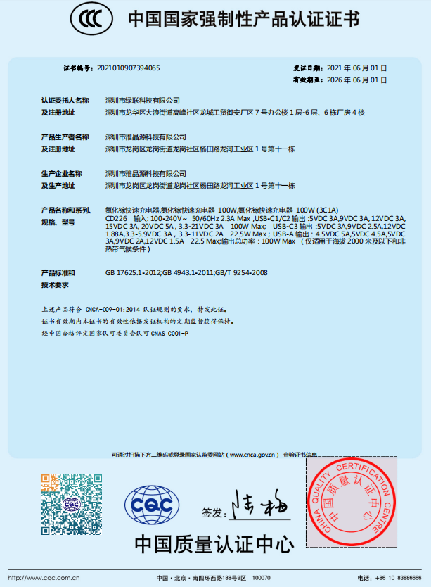 產品已經通過了國家CCC認證。