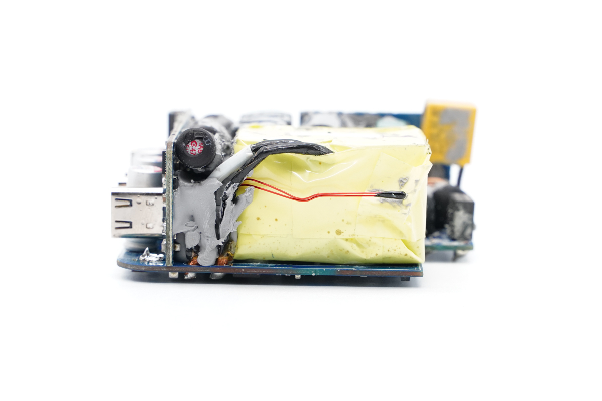PCB板另一側是變壓器,并配有熱敏電阻進行溫度監控。