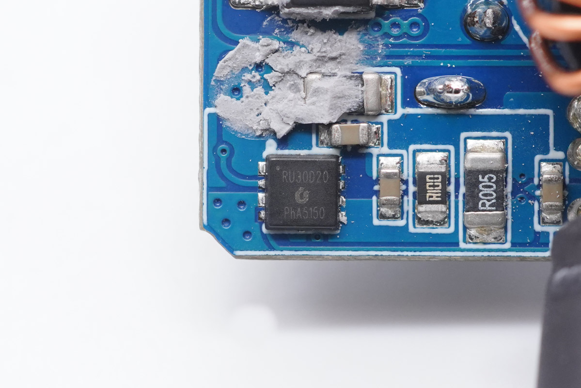 此外還有一顆輸出VBUS開關管,銳駿RU30D20M2,NMOS管,耐壓30V,PDFN3333封裝,用于C3和A端口分配。