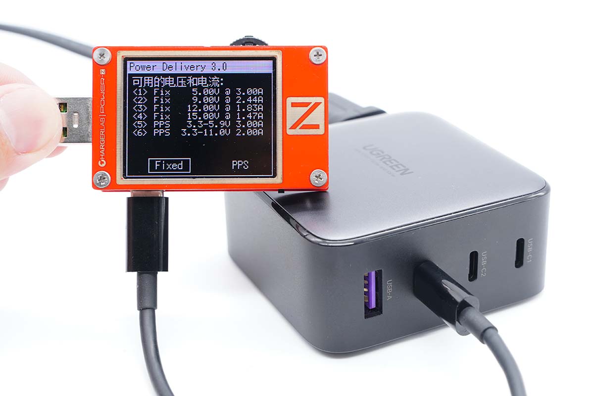 并且具備5V3A、9V2.44A、12V1.83A、15V1.47A四組固定電壓檔位,以及3.3-5.9V3A和3.3-11V2A兩組PPS電壓檔位。
