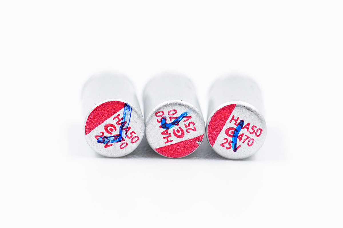 固態電容均來自中國臺灣鈺邦,規格都是25V 470μF。