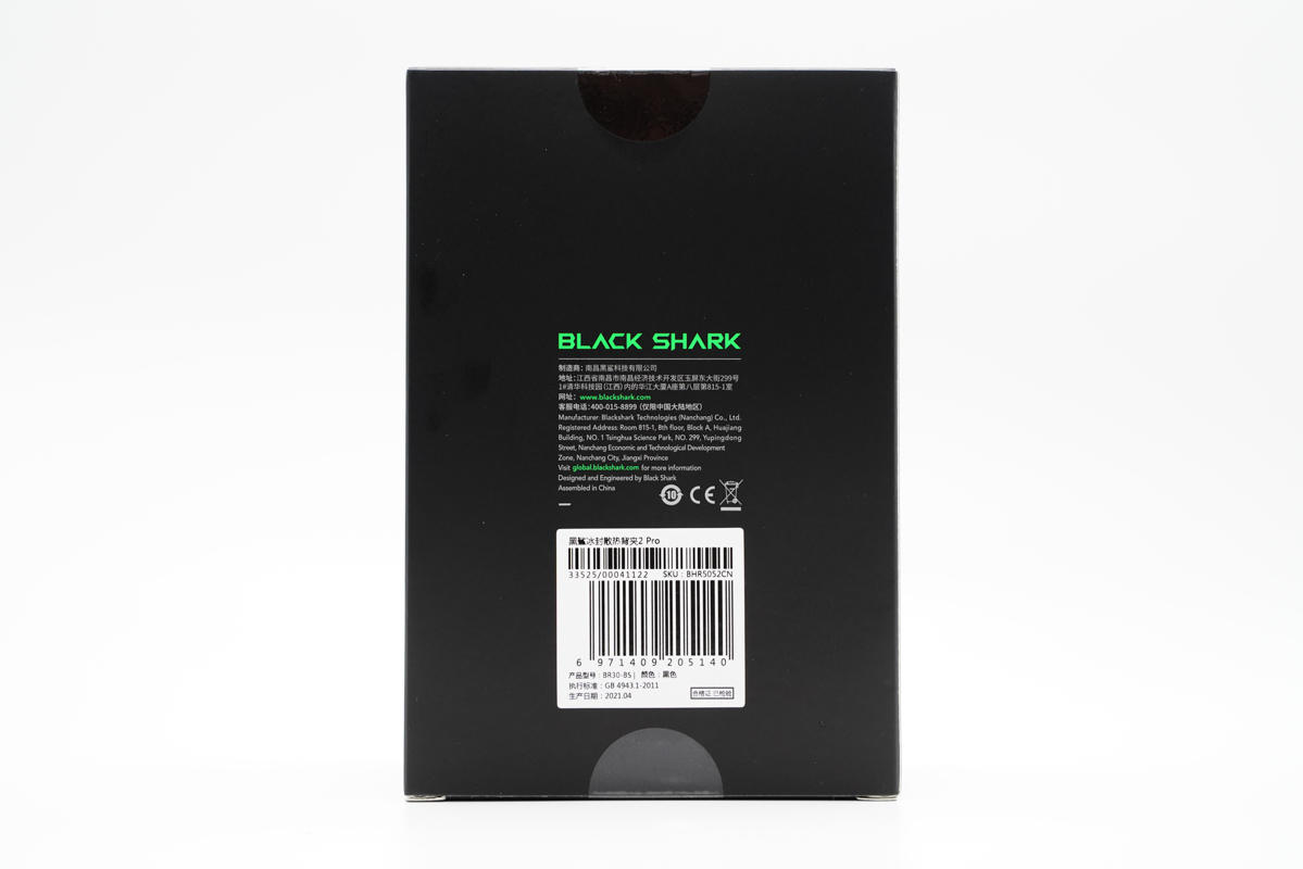 包裝盒為黑色,正面中心印有背夾外觀圖、左上角是綠色的黑鯊品牌logo,在黑色襯托下非常吸睛,左下角是產品名稱。