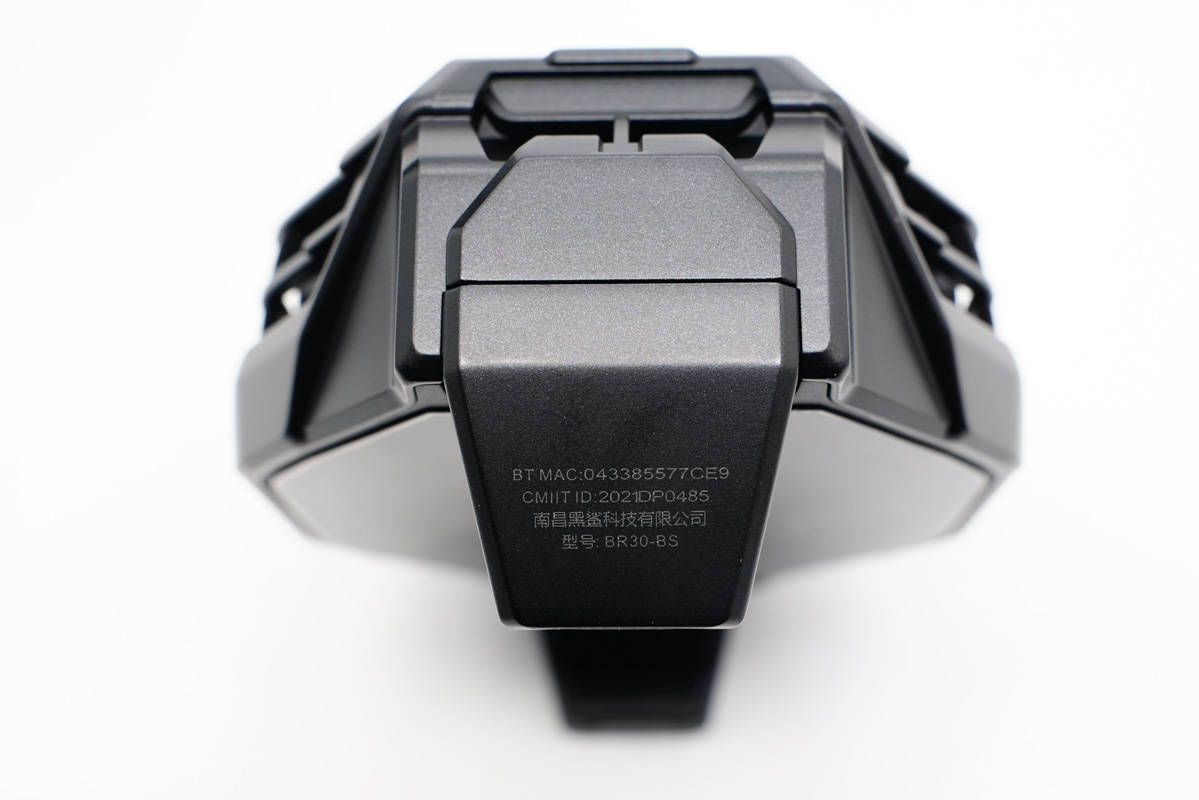 盒子背面貼有信息貼紙,生產商南昌黑鯊科技有限公司,產品型號BR30-BS,生產日期2021年4月。