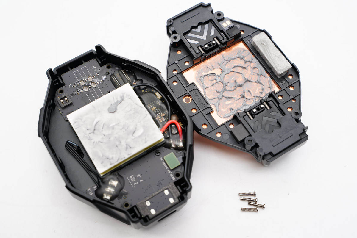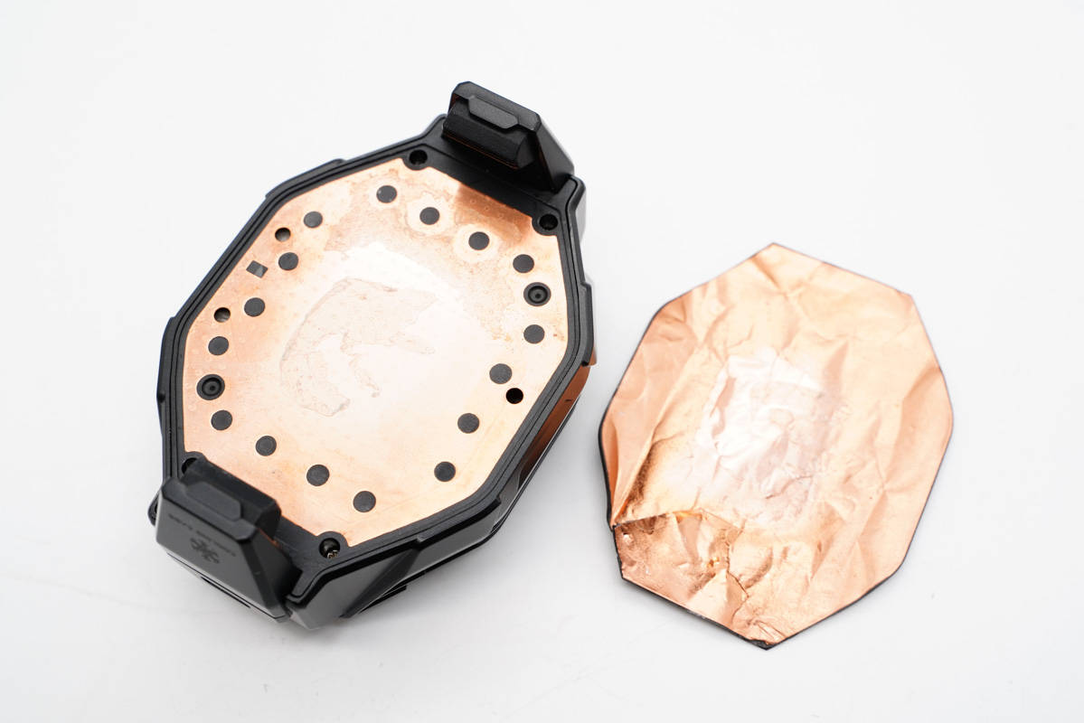 將背面導冷墊撕下,下面使用四顆螺絲對機身殼封裝固定,導冷墊背面貼有銅箔。