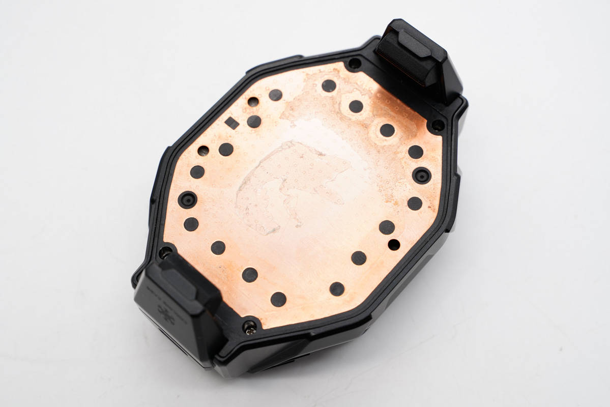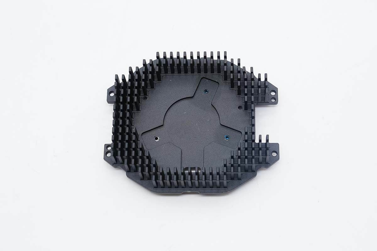 最后是黑色的散熱鋁塊,背面中心凸起,用以支撐固定制冷晶片。