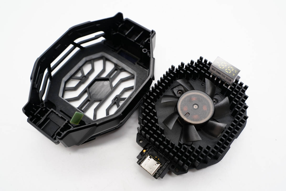 PCB板、制冷晶片、小風扇以及鋁合金散熱板組成了背夾的散熱系統。