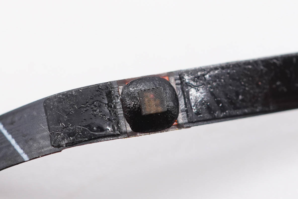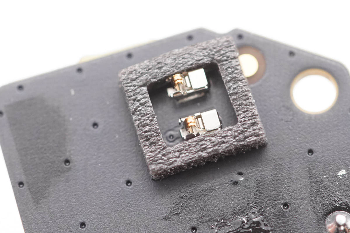 與熱敏電阻連接的兩個觸點,外圍一圈泡棉密封。