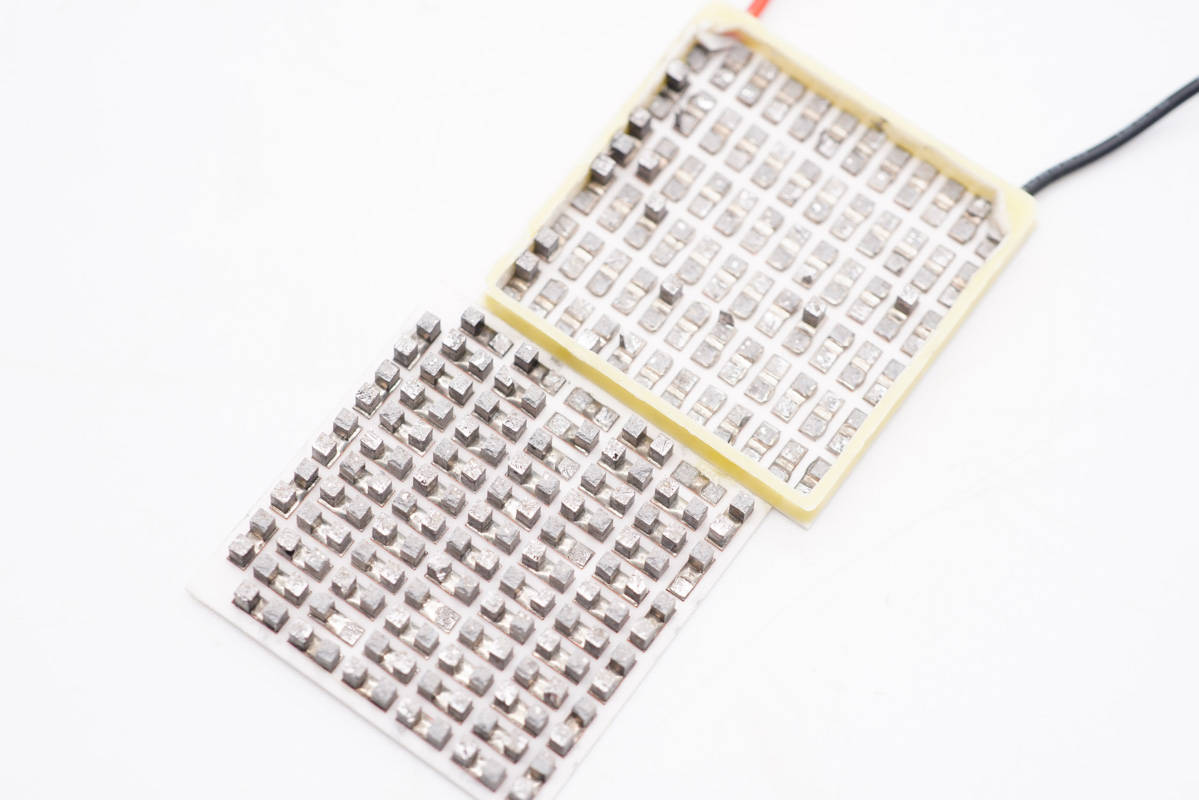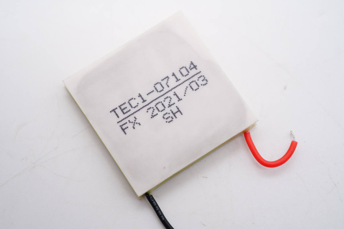 制冷晶片特寫,型號為TEC1-07104。