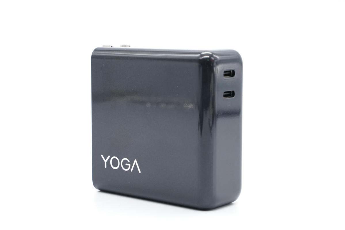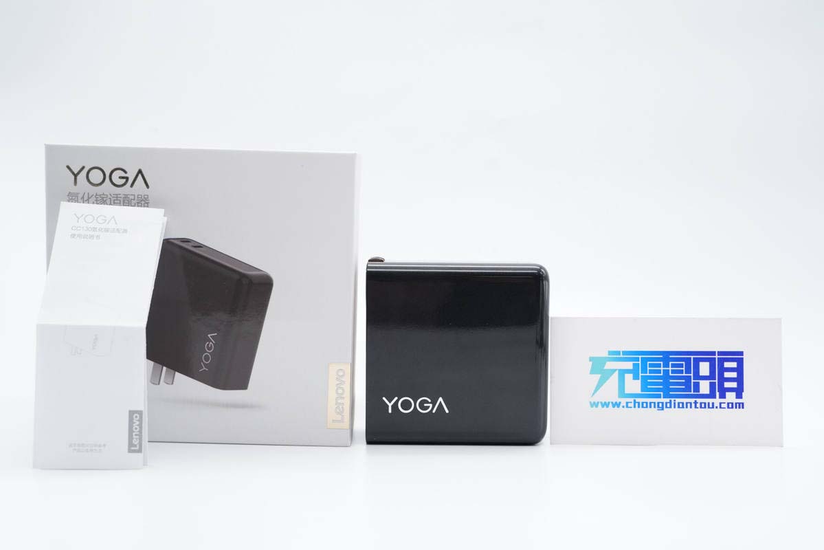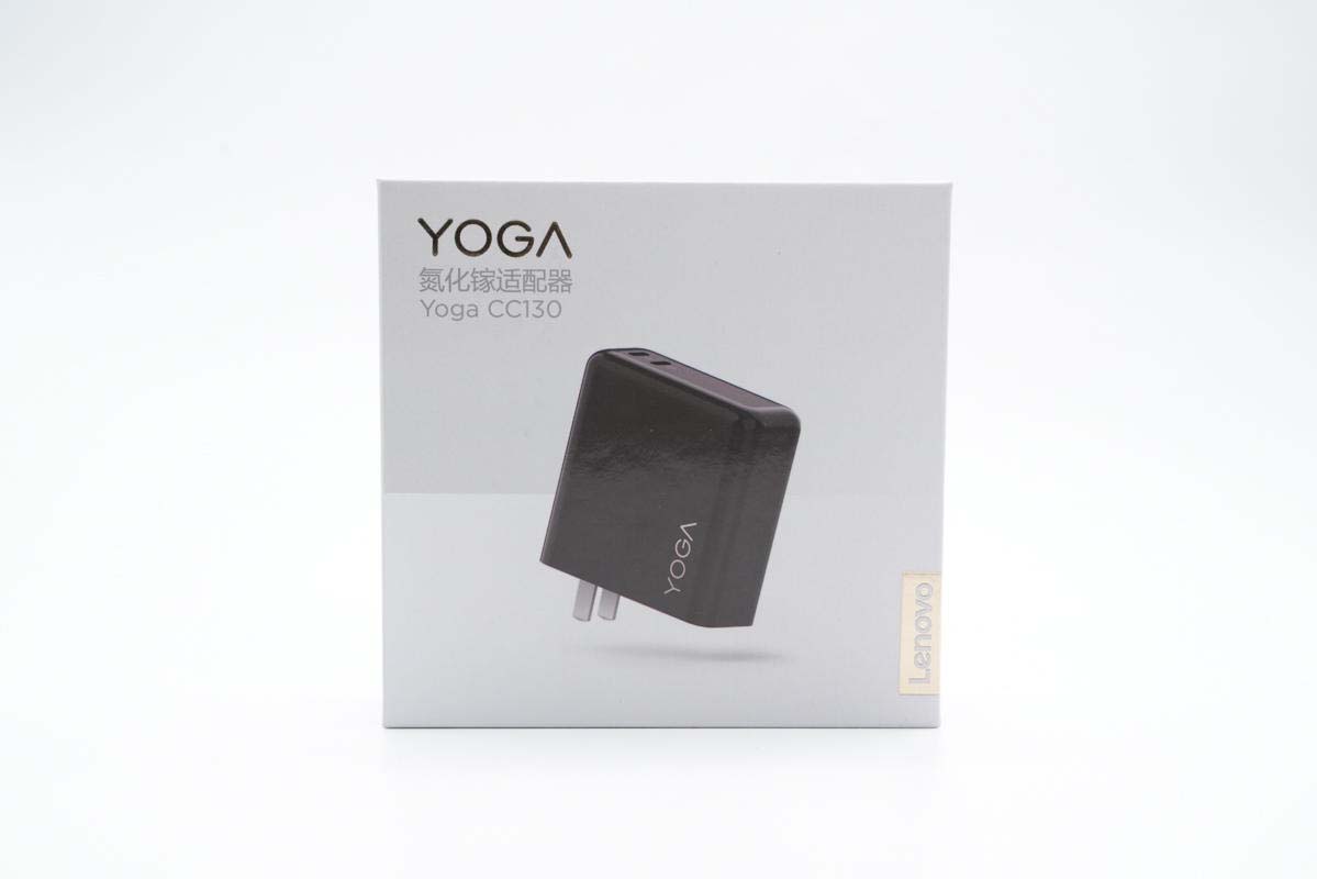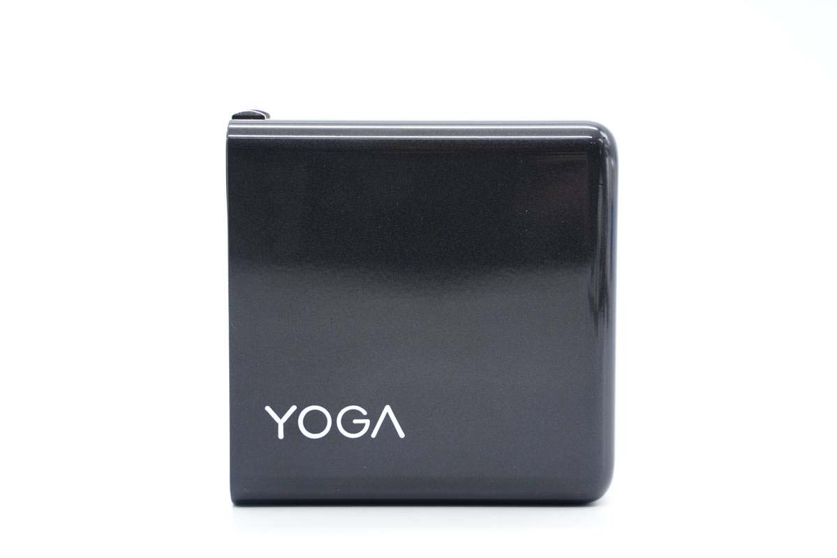 包裝盒延續YOGA品牌簡約風格設計,對角分別印有Lenovo、YOGA品牌以及產品名稱,中心印有充電器外觀圖。