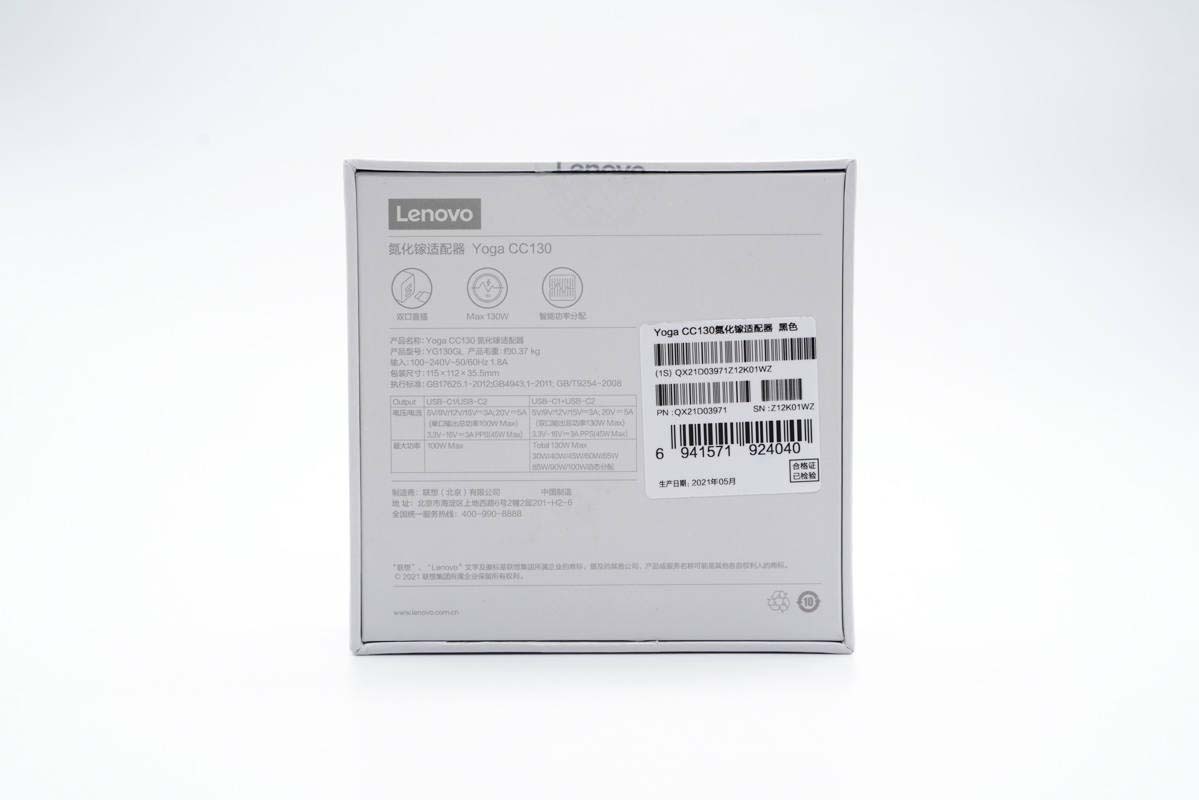 一、聯想YOGA 130W氮化鎵充電器外觀