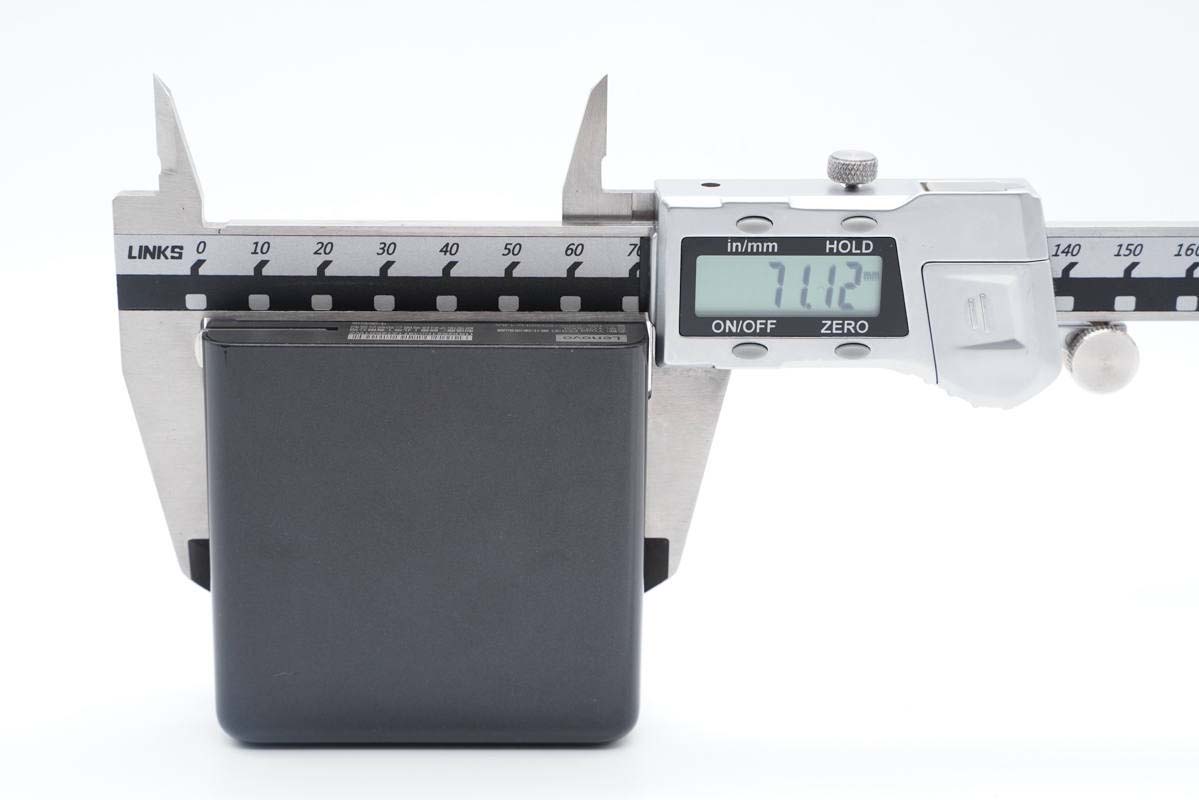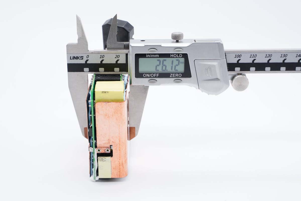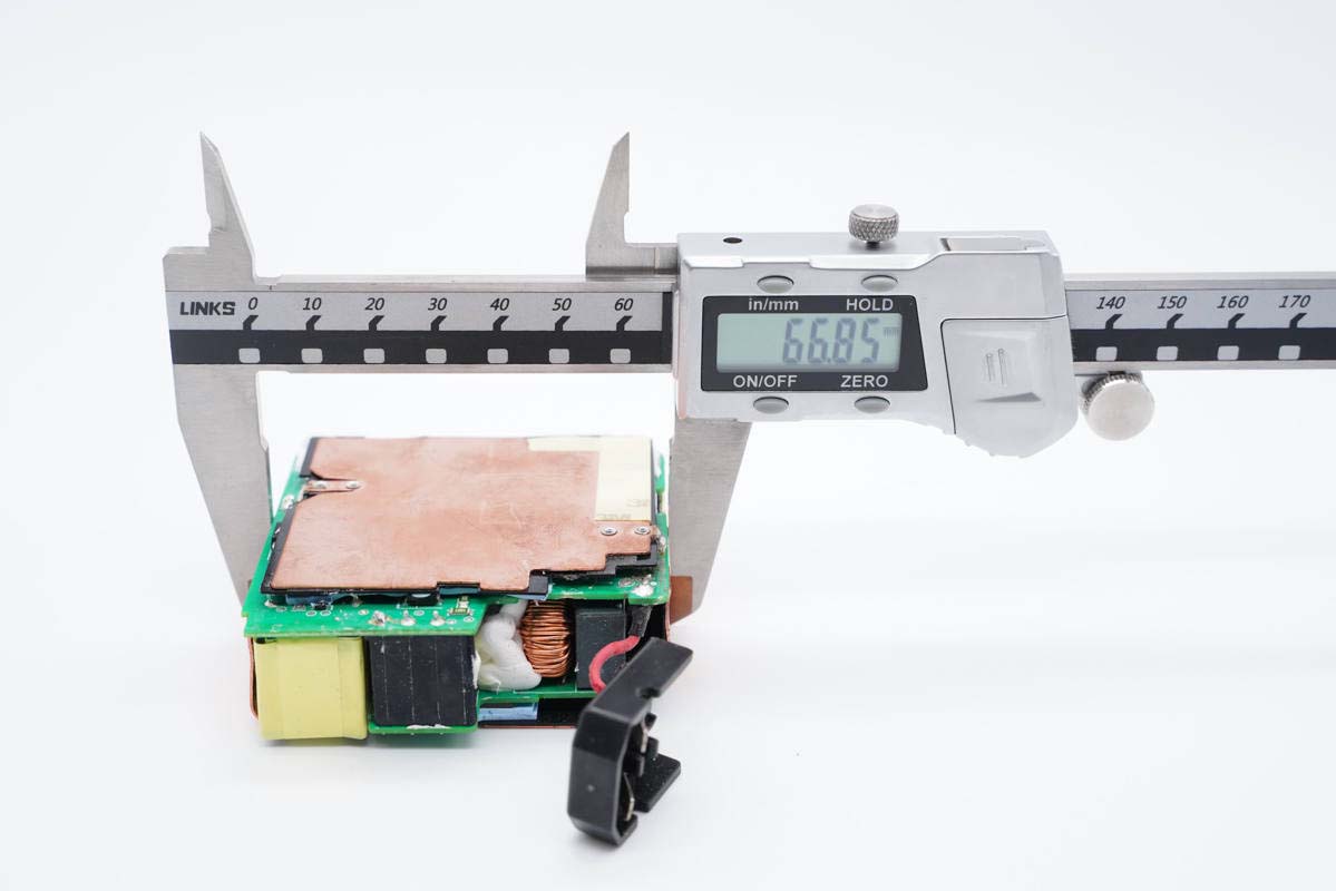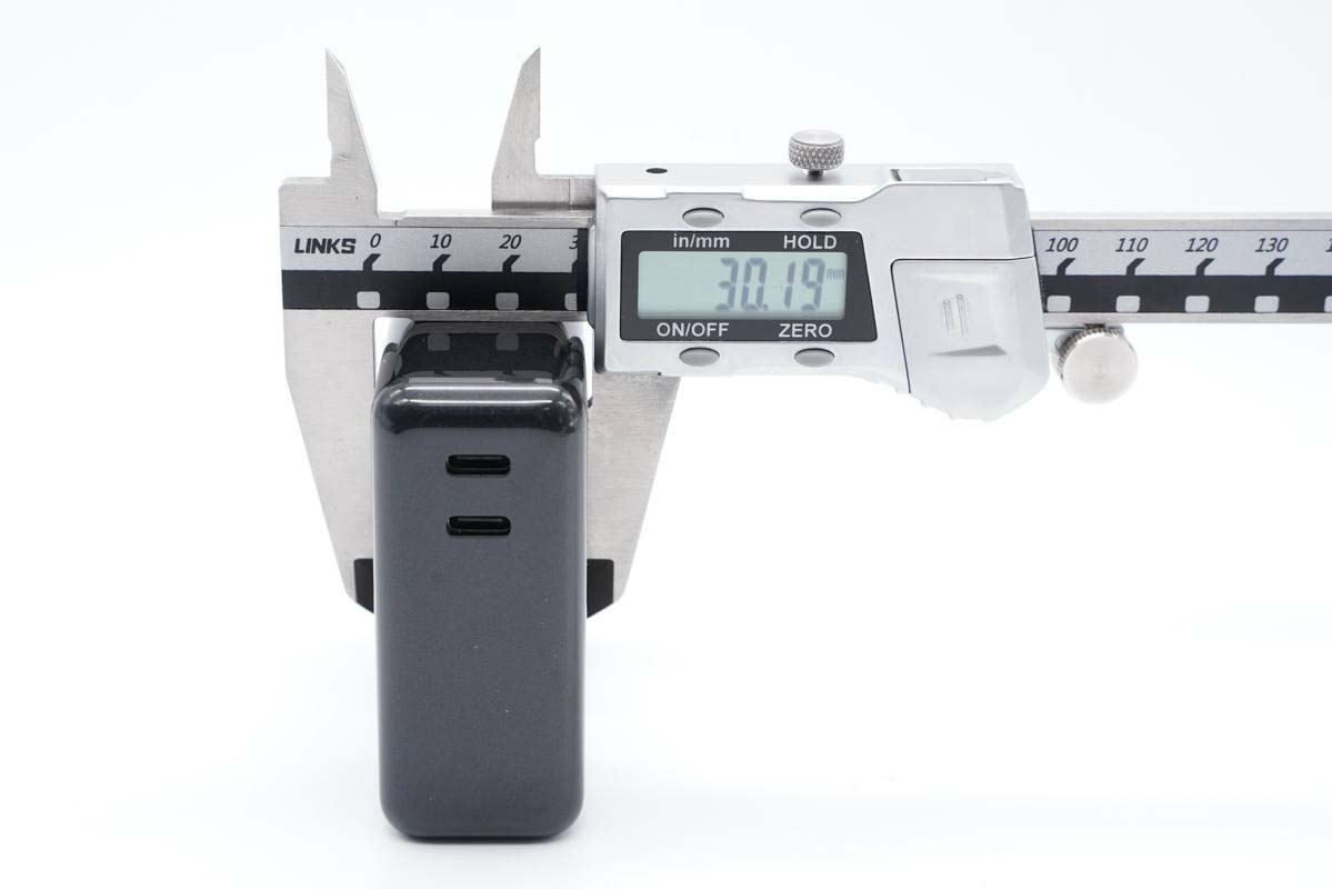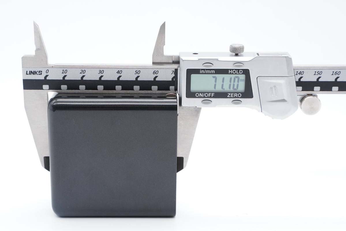 使用游標卡尺實測充電器機身高度為71.1mm。