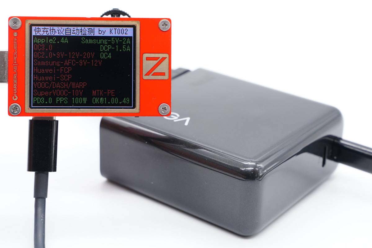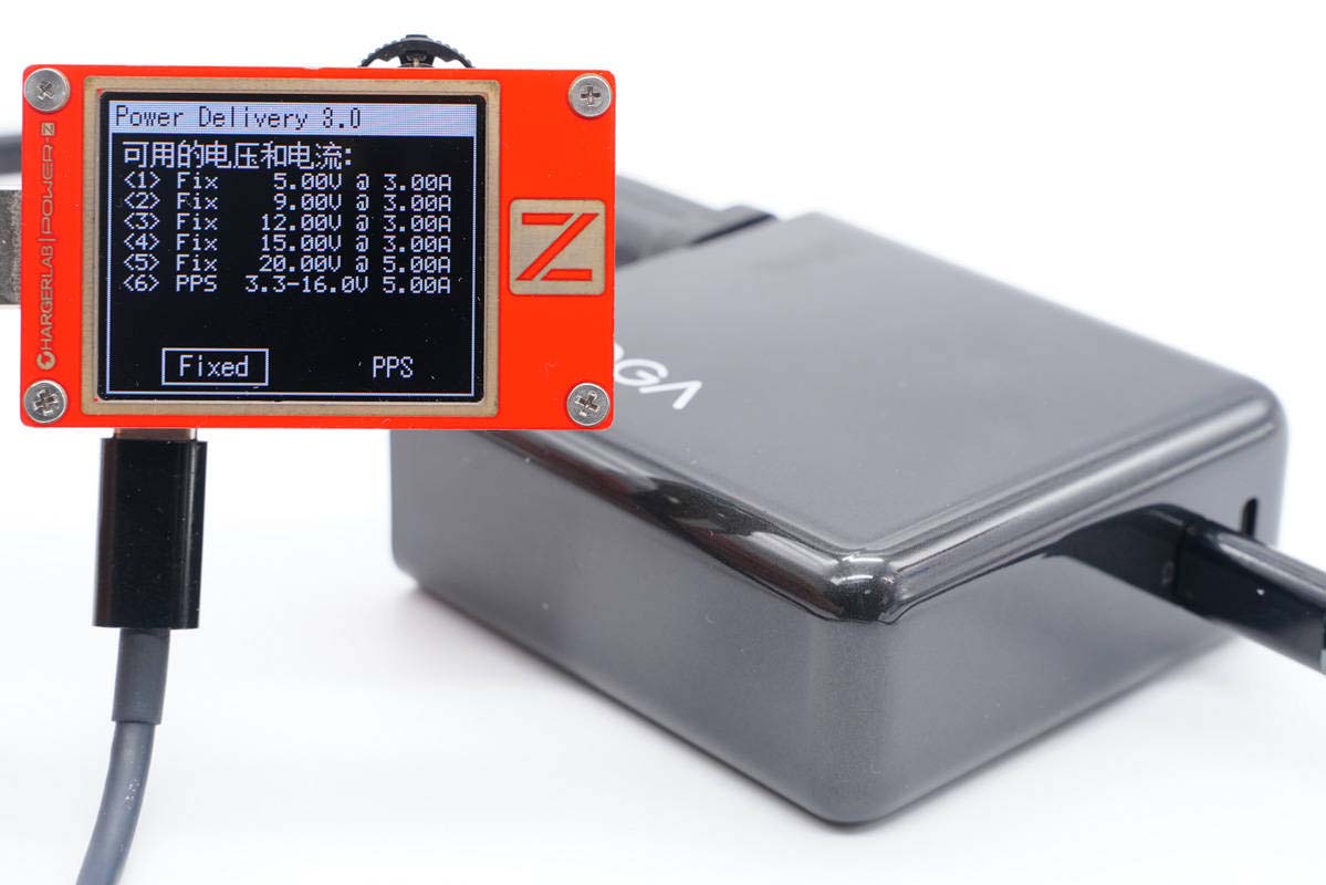 使用ChargerLAB POWER-Z KT002測得USB-C1口支持Apple 2.4A、Samsung 5V2A、DCP協議,以及PD3.0、PPS快充協議。