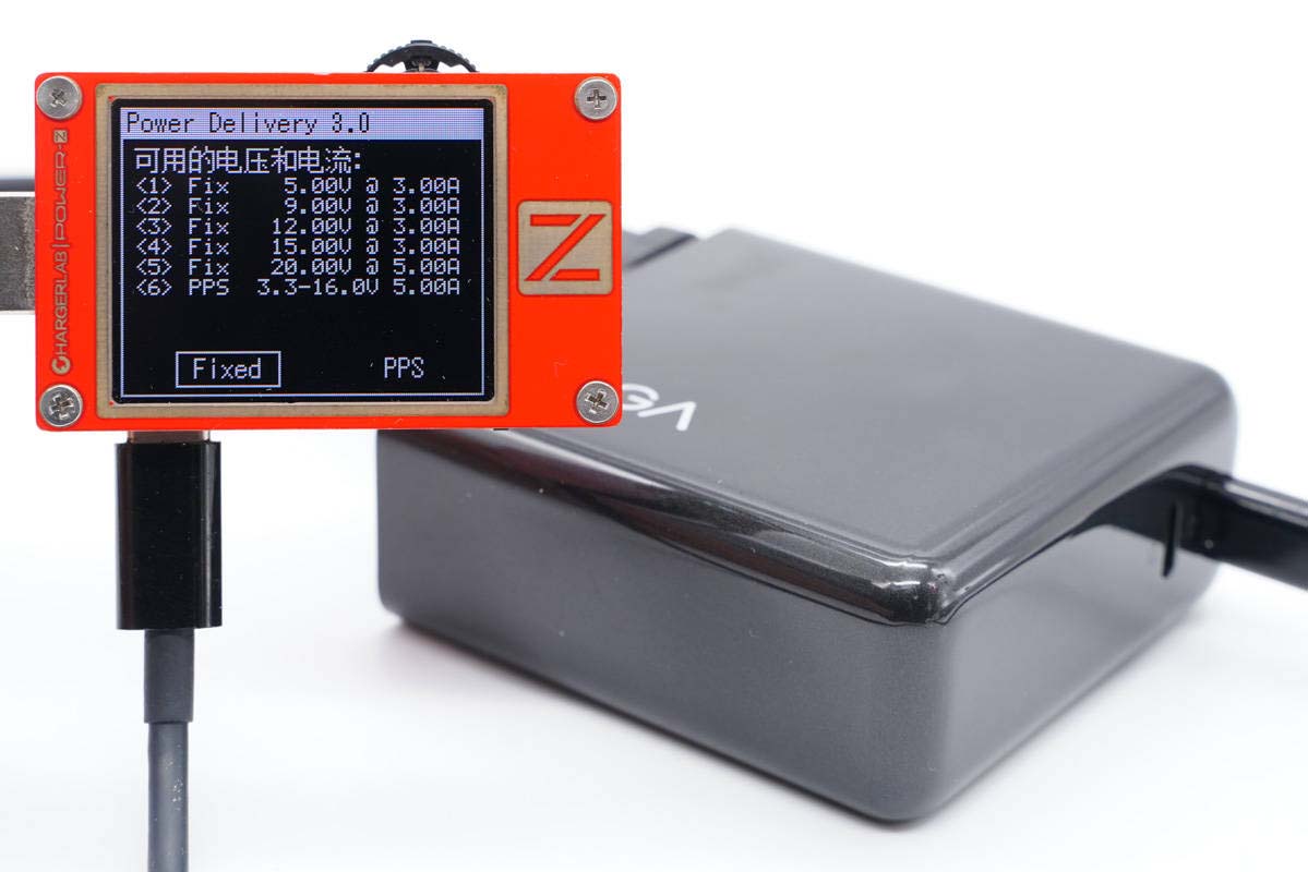 此外PDO報文顯示C1口還具備5V3A、9V3A、12V3A、15V3A、20V5A五組固定電壓檔位,以及3.3-16V5A一組PPS電壓檔位。