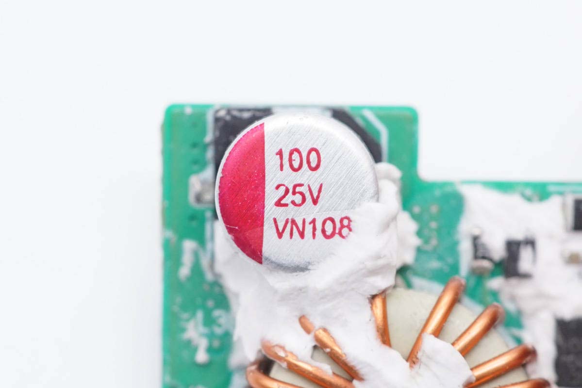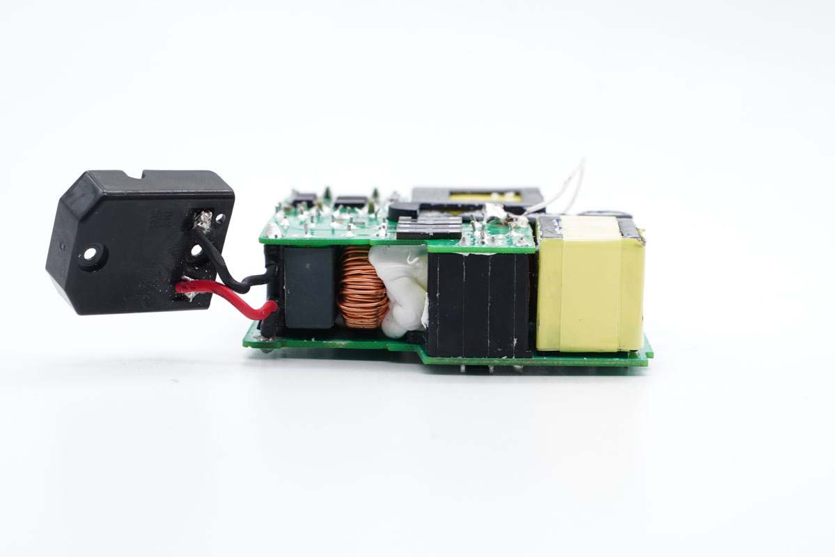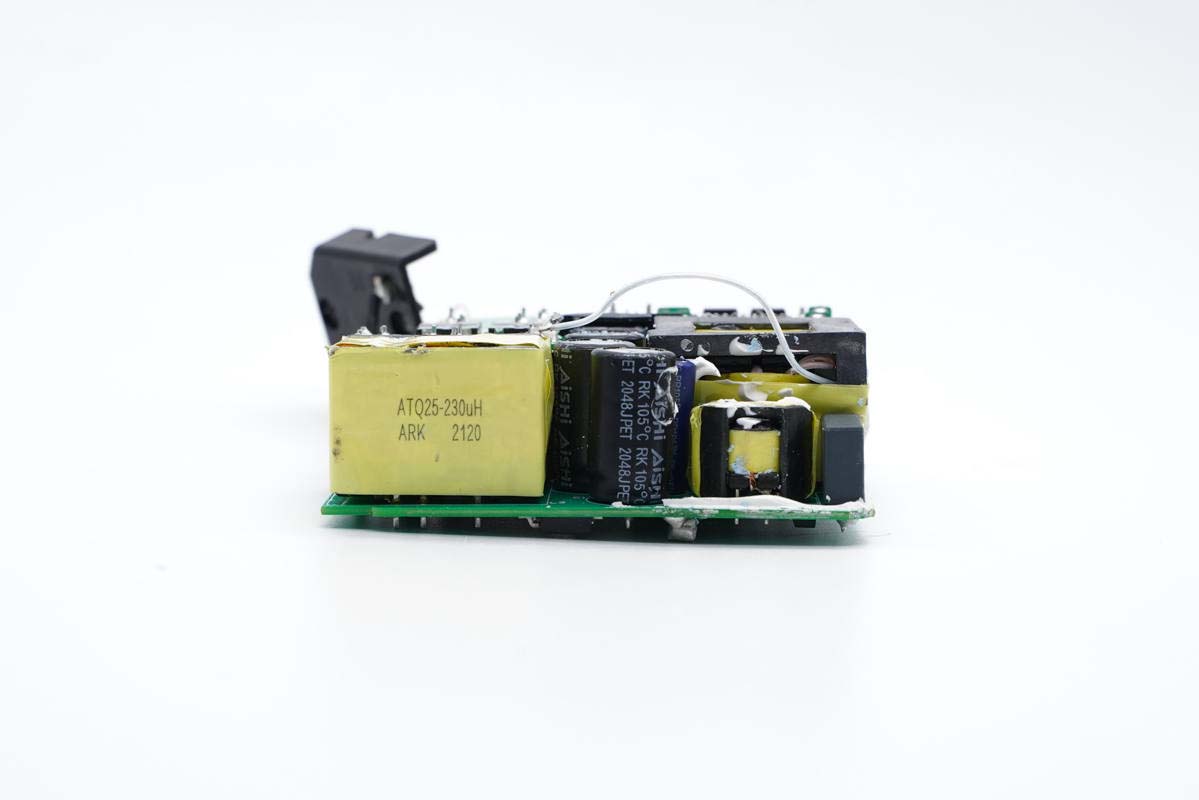 輸入端采用AC導線連接通電,夾層間可以看到安規X電容以及共模電感等器件。