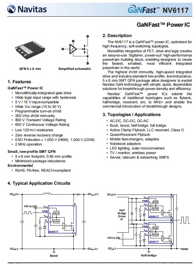 納微 NV6117 詳細資料。