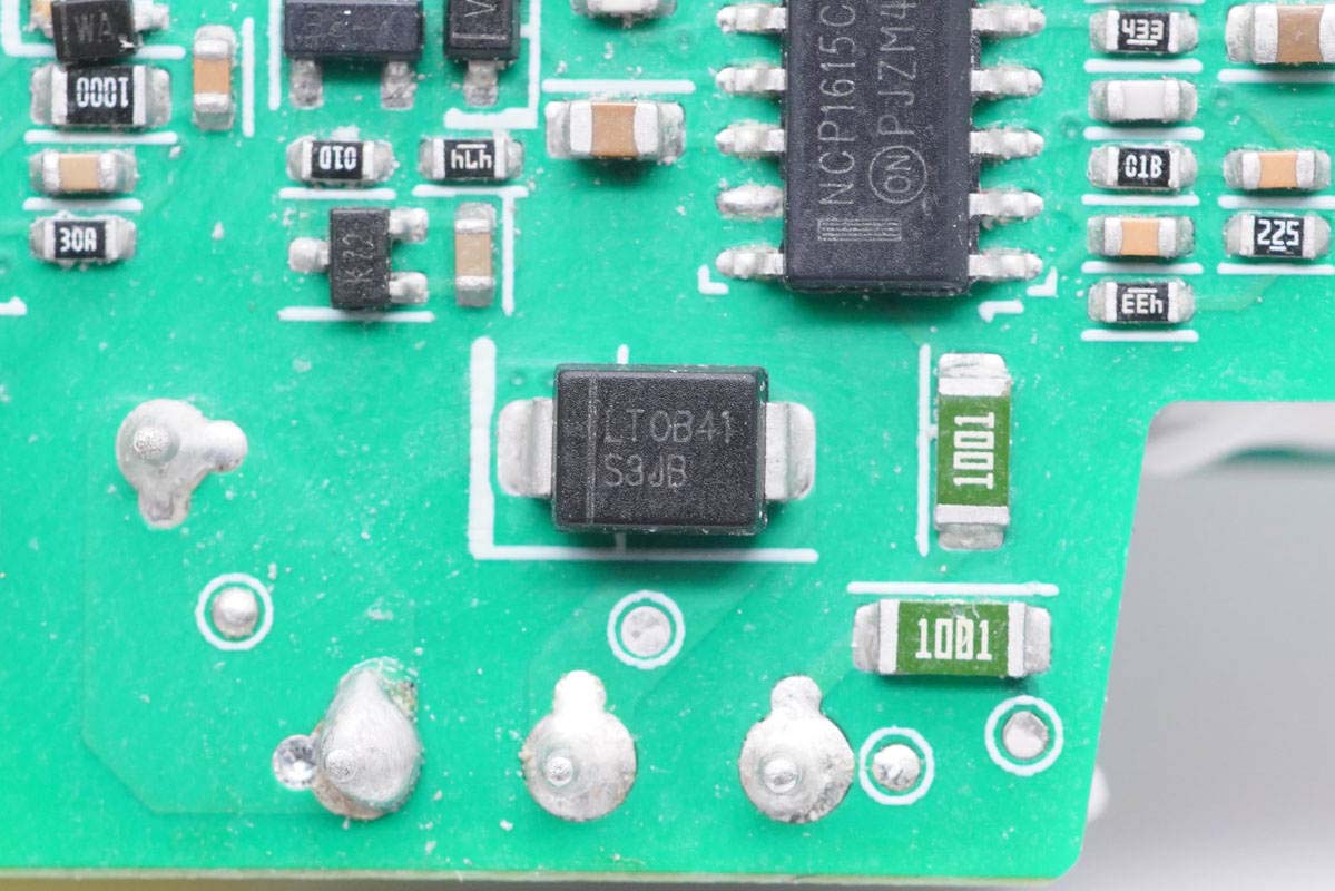 背面還有一顆S3JB的整流二極管,3A 600V耐壓。