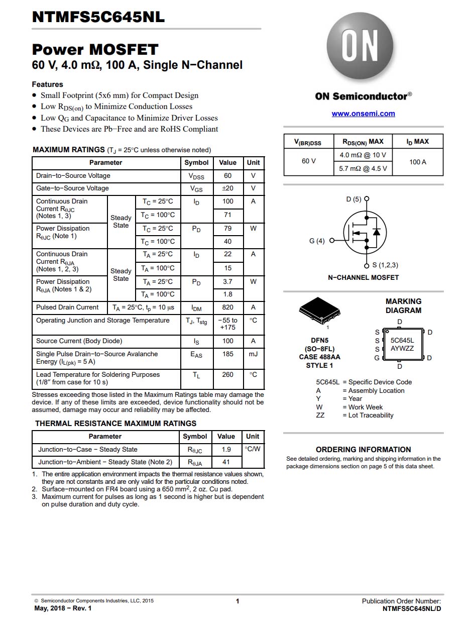 安森美 NTMFS5C645NL 詳細資料。