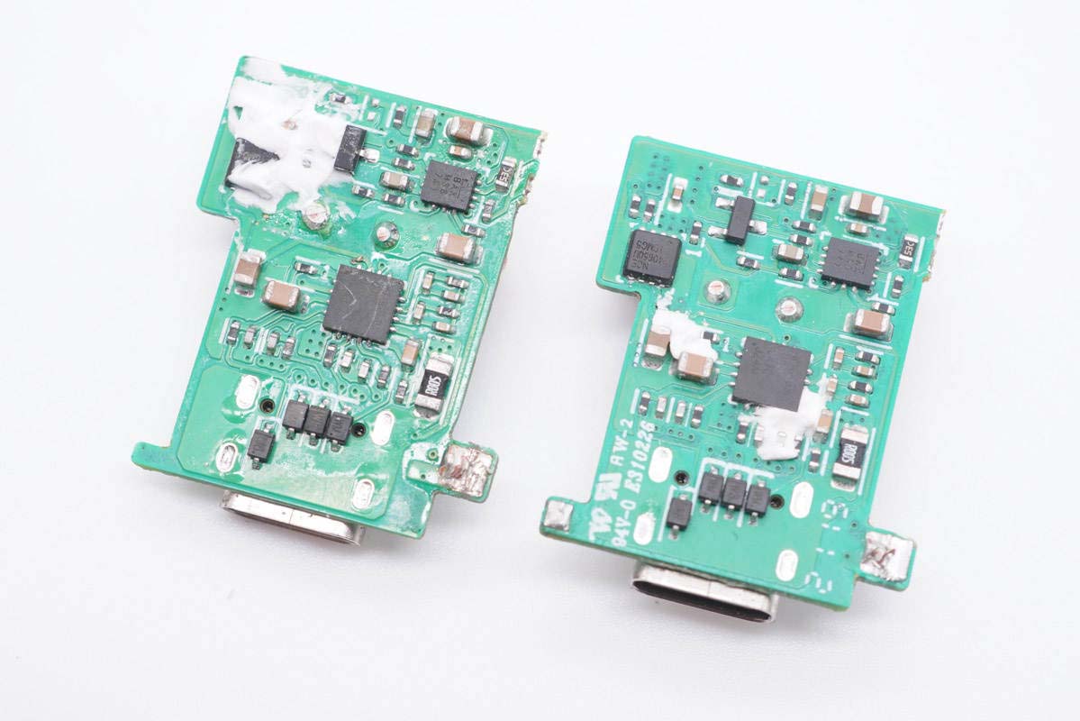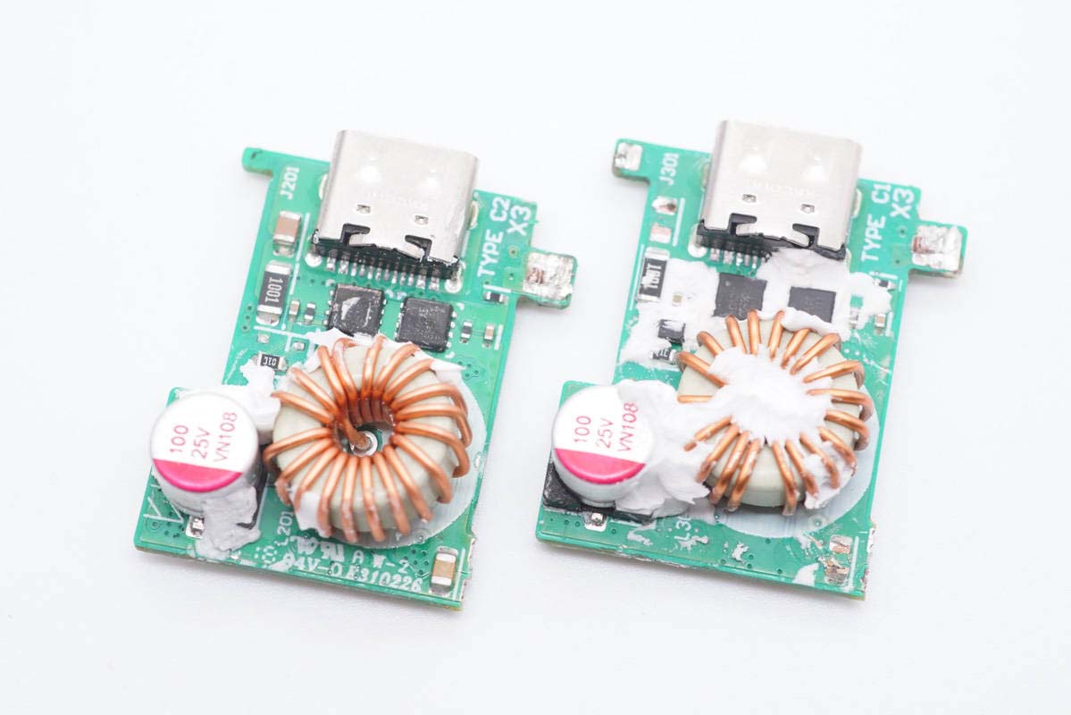 另一面設有同步整流降壓轉換器、協議IC以及輸一顆MOS管,接口背面還有TVS進行靜電保護下面我們以其中一塊小板為例進行詳細了解,不多贅述。