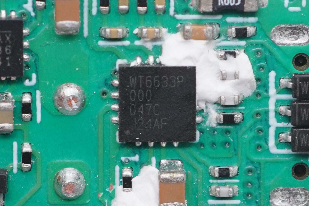 充電頭網通過拆解了解到,采用偉詮WT6633P的還有小米55W氮化鎵充電器、堅果65W單C口氮化鎵充電器、小米120W超級快充、小米10 Pro原裝65W快充充電器、小米9 Pro原裝45W快充充電器、聯想27W USB PD快充充電器、安福瑞63W雙口快充充電器等產品。