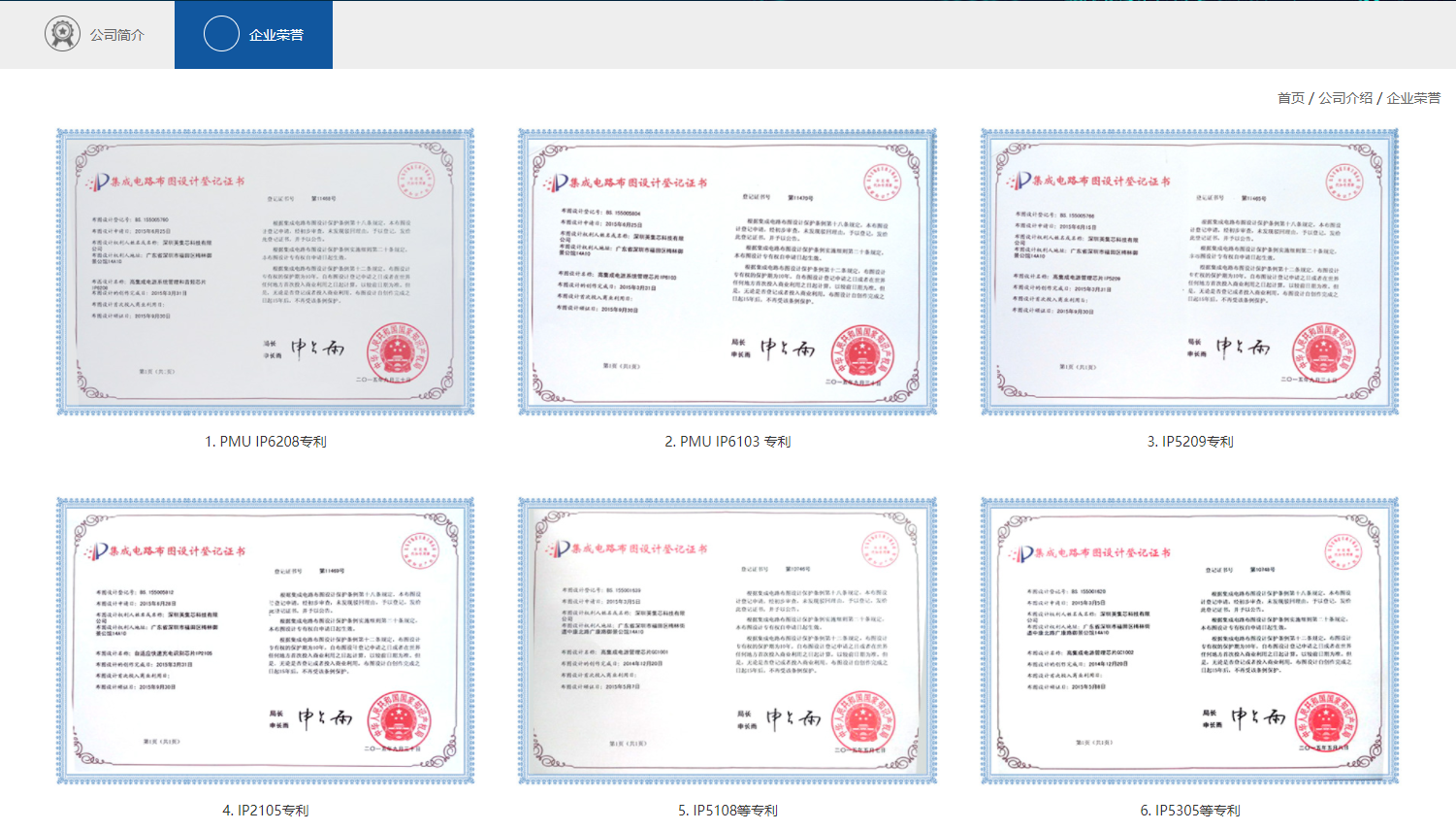 在英集芯官網(wǎng)就可以看到榮譽(yù)界面,是一張張專利登記證書,彰顯著英集芯對實(shí)力的驕傲。