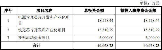 本次募集資金也將用在英集芯目前的主要業(yè)務(wù)上,包括電源管理芯片開發(fā)和產(chǎn)業(yè)化項(xiàng)目,投資金額約1.86億元;快充芯片開發(fā)和產(chǎn)業(yè)化項(xiàng)目,約1.56億元;還有6000萬元擬補(bǔ)充流動資金項(xiàng)目。