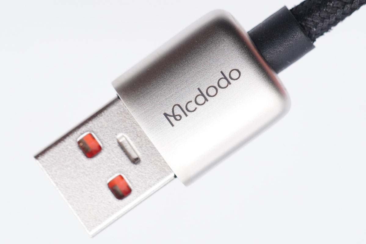 線(xiàn)頭金屬殼采用高純度鋅合金材質(zhì),一體成型制作工藝,耐腐蝕、耐磨損,線(xiàn)頭邊角圓潤(rùn)光滑。A頭外殼上有Mcdodo品牌。