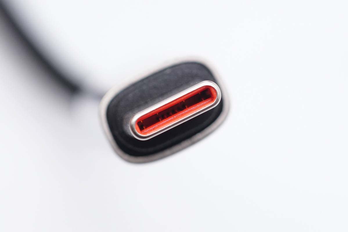 USB-C公頭特寫(xiě),非全PIN設(shè)計(jì)。