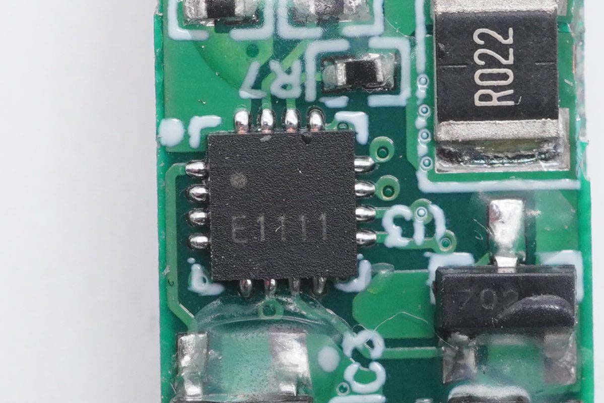 絲印E1111的MCU,用于計(jì)算充電功率和驅(qū)動(dòng)顯示屏顯示。