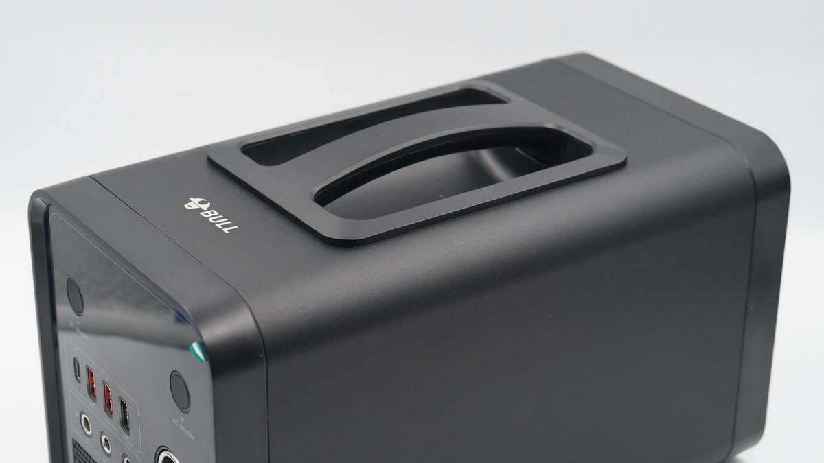 BULL公牛這款戶外電源整體采用炫酷的黑色外觀設(shè)計,機身主體結(jié)構(gòu)采用合金殼體制作,邊緣防磕碰材質(zhì)底部加入了橡膠防滑墊避免滑動,頂部提手方便用戶攜帶。內(nèi)置165000mAh鋰離子動力電池組,擁有豐富的交直流輸出配置。