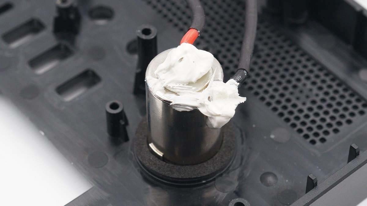連接AC插口的導(dǎo)線也打膠加固。