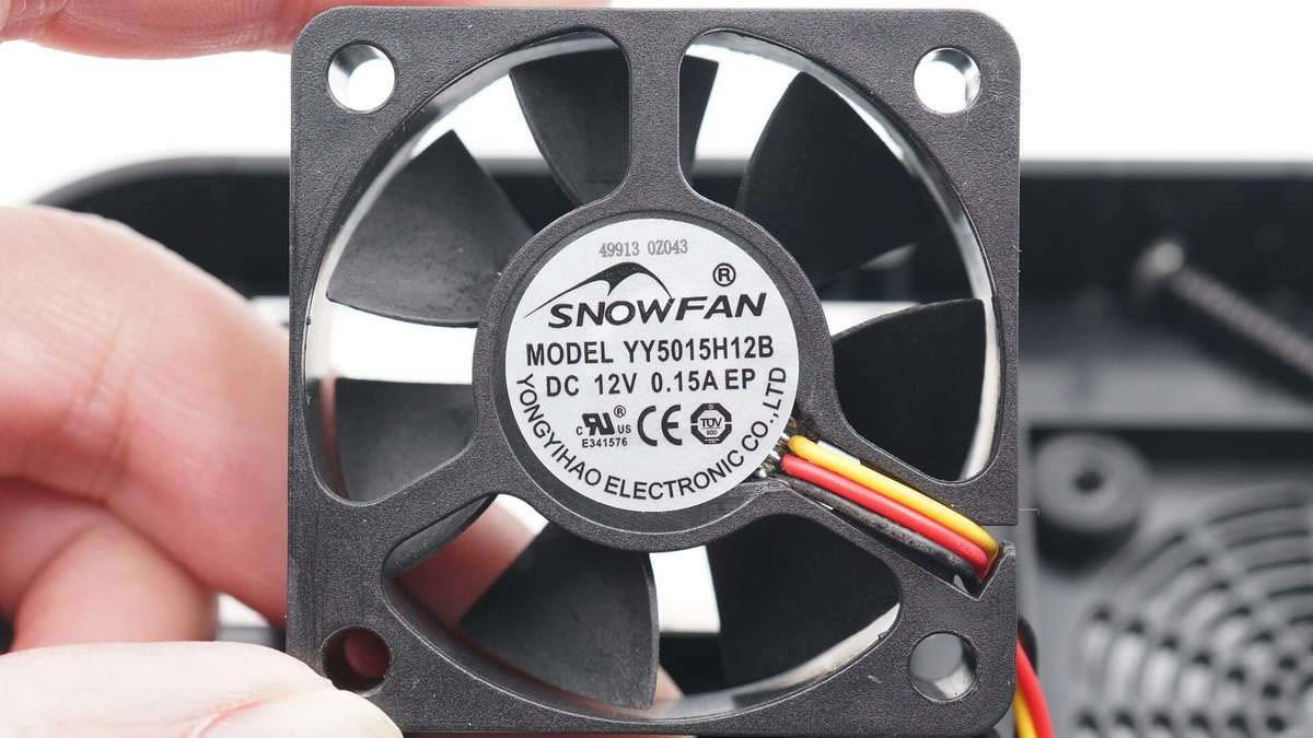 小風(fēng)扇來自SNOWFAN,永億豪電子有限公司,型號YY5015H12B,支持DC 12V0.15A輸入,通過了CE、TUV認證。