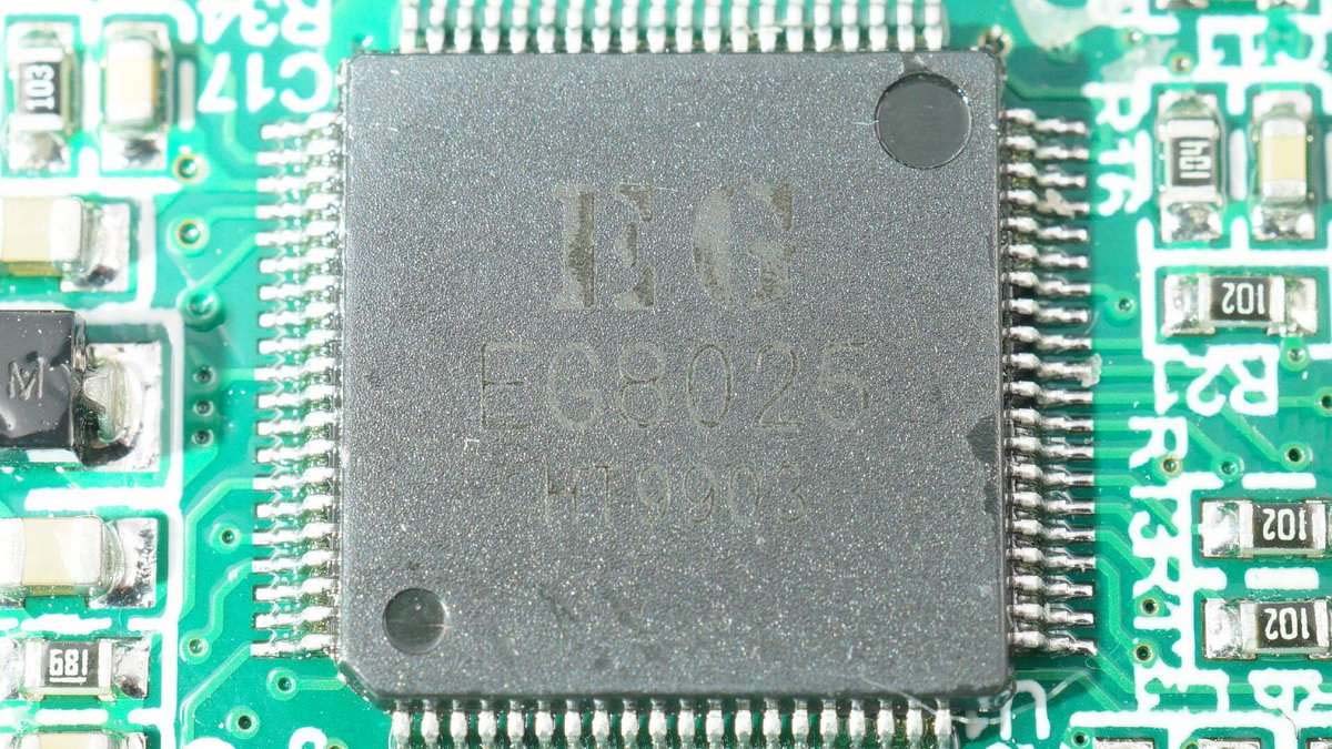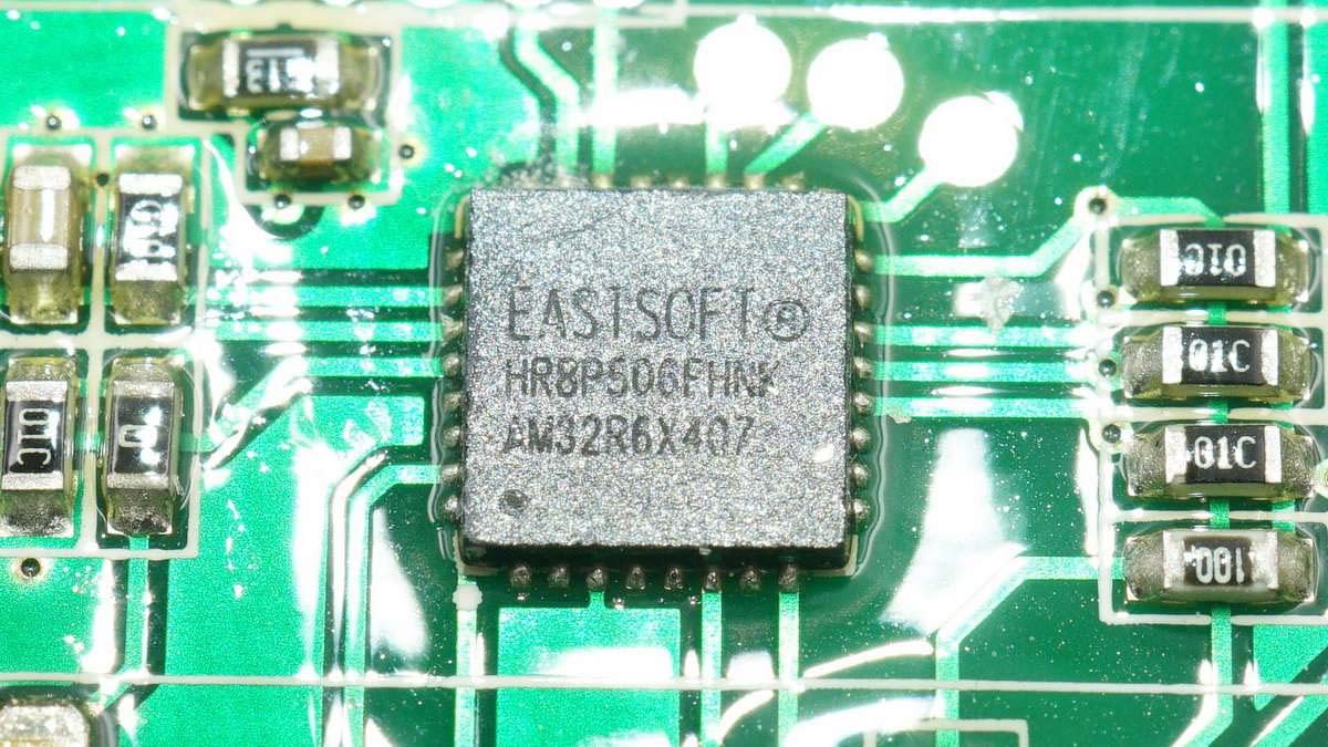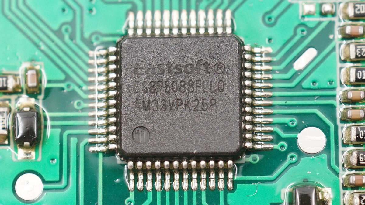 東軟載波ES8P5088FLLQ,內(nèi)置ARM M0內(nèi)核的32位通用MCU,用于屏幕顯示信號輸出。
