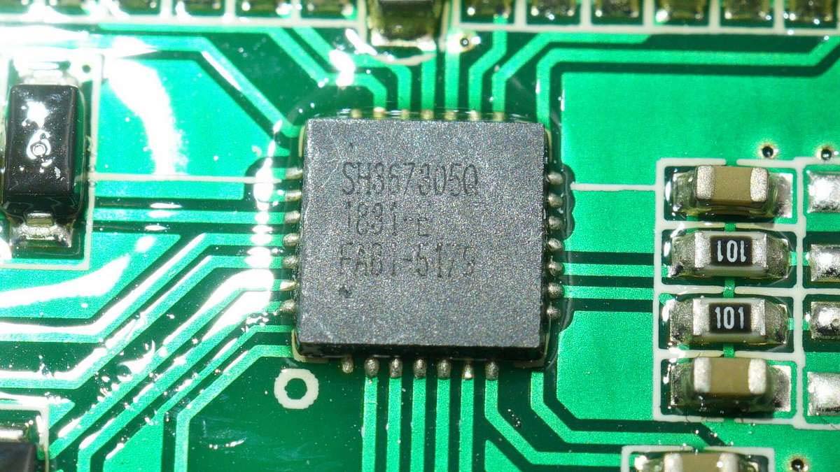 綠色小板上有一顆大芯片。