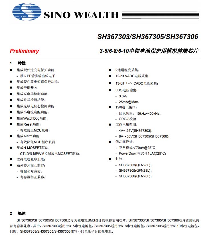 中穎SH367305 6-8串鋰電池保護芯片,內(nèi)置均衡功能,用于6串電池組的過充電、放電短路、過熱等保護功能。