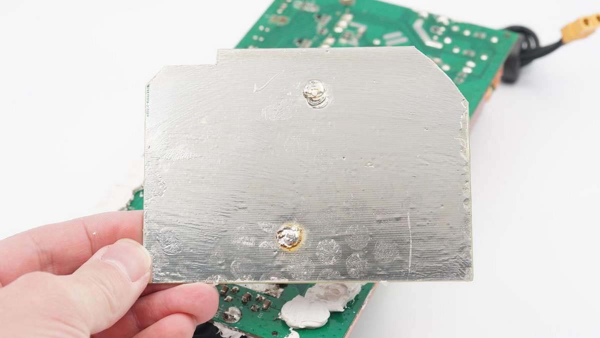 擰下底部的固定螺絲,將散熱片拆掉,底部有導(dǎo)熱墊幫助將熱量傳遞給散熱片。