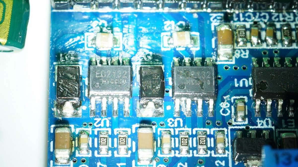 撕掉導(dǎo)熱墊,下面有8顆MOS管。